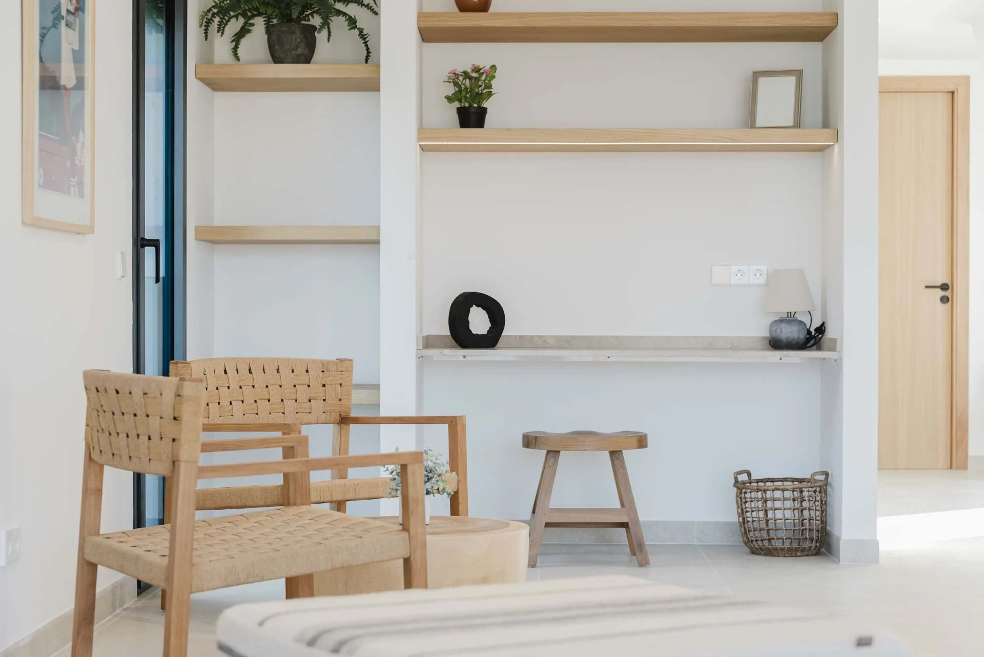 Oak interior doors, shelving, and built-in carpentry
